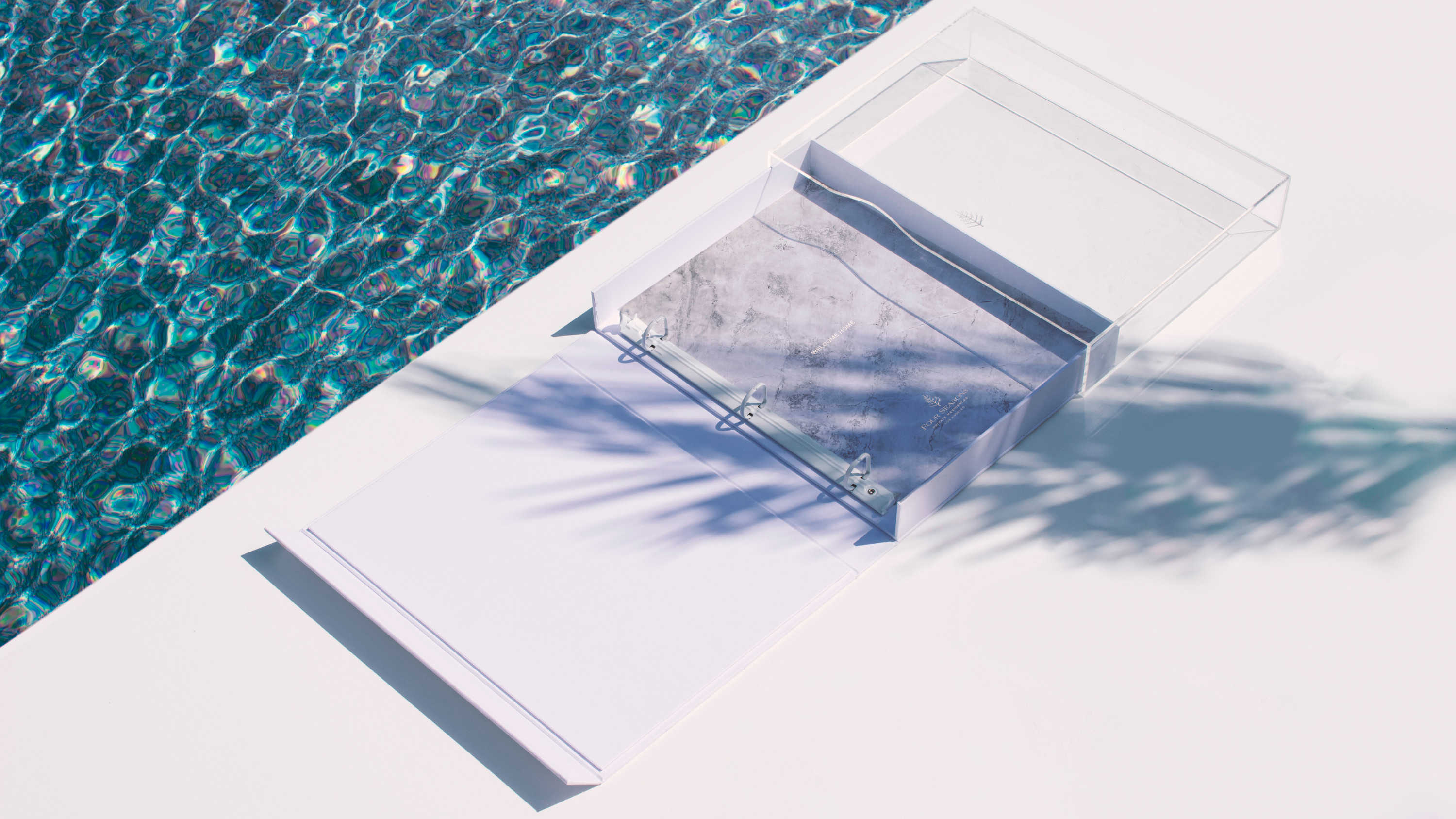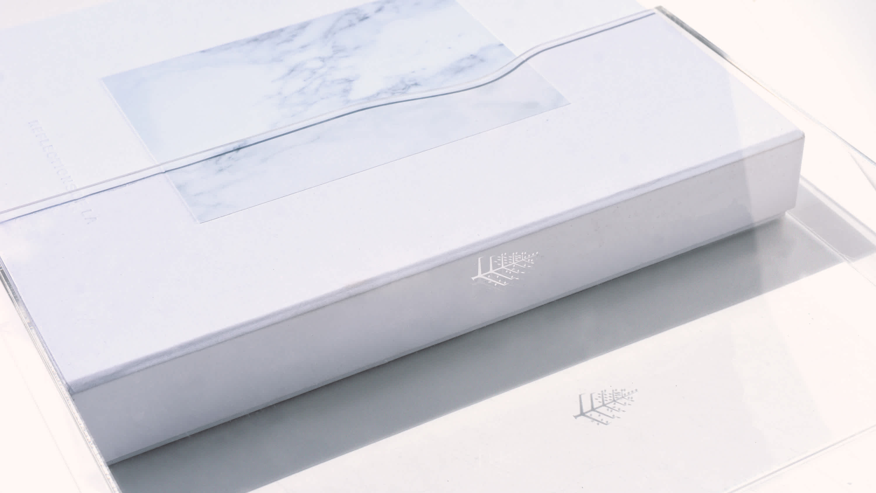 Reflections can mean many things. The glistening of the water by the indulgence of the pool. Light hitting a plane of glass and dancing from the building. Lastly, that ephemeral moment in time where you find peace & introspection at home. Self-reflection is a grounding concept that connects us to our time and space. This concept brings to life the feeling invoked by reflections in an artful and abstracted way, which is depicted with the compendium’s acrylic casing.